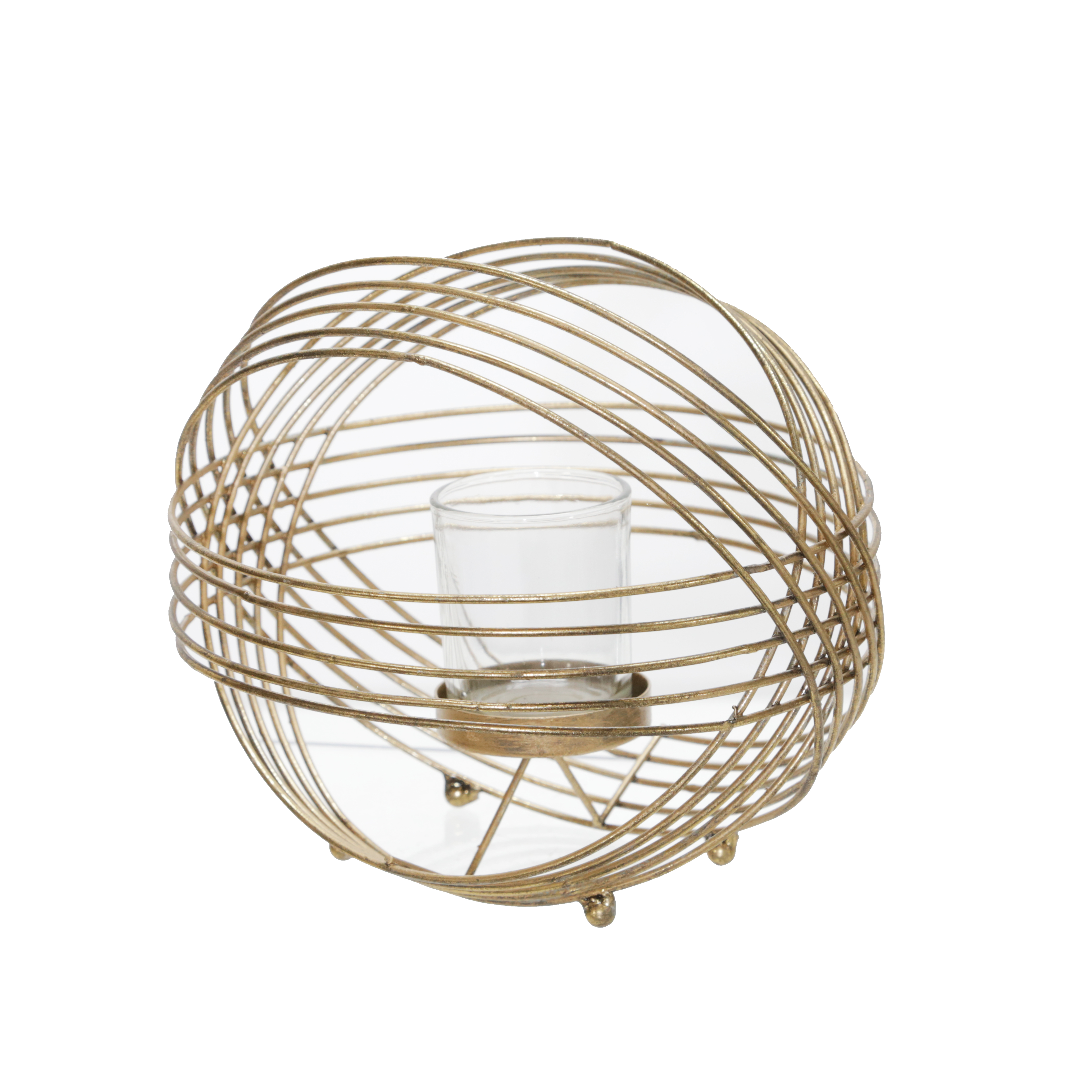 Pieza decorativa con bricero en cristal incluido. Porta vela. Dorado. Ideal en cualquier mesa de sala y comedor.