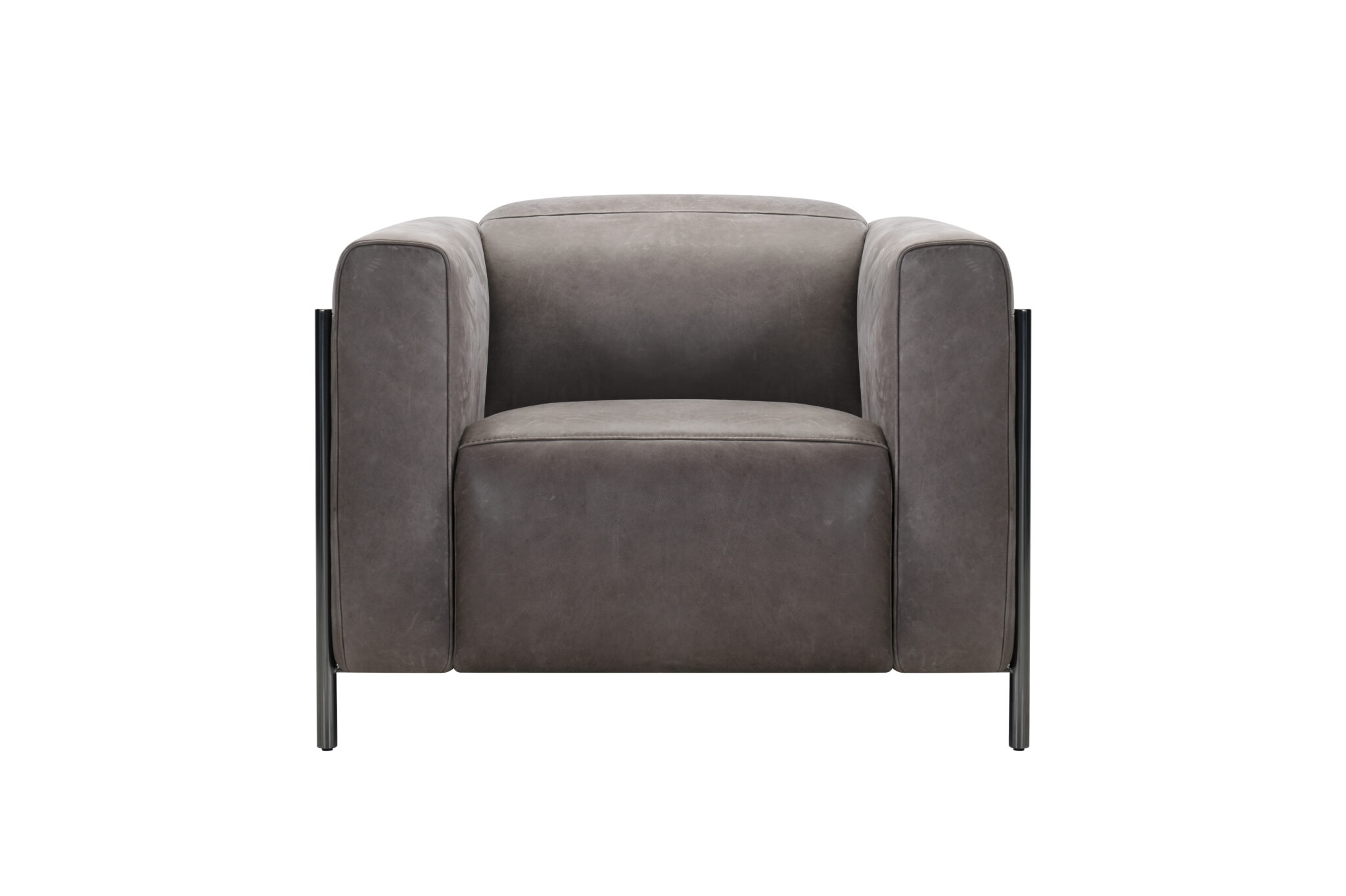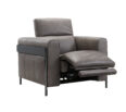 Butaca reclinable en piel , color Smoked slate. Detalle en madera y metal que definen su estilo.