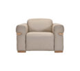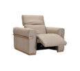 Butaca reclinable en piel, color taupe beige. Detalles en madera.