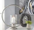 Hermosa pieza decorativa en aluminio y cristal. Brisero para velas incluido. Ideal para mesas de centro , comedores.
