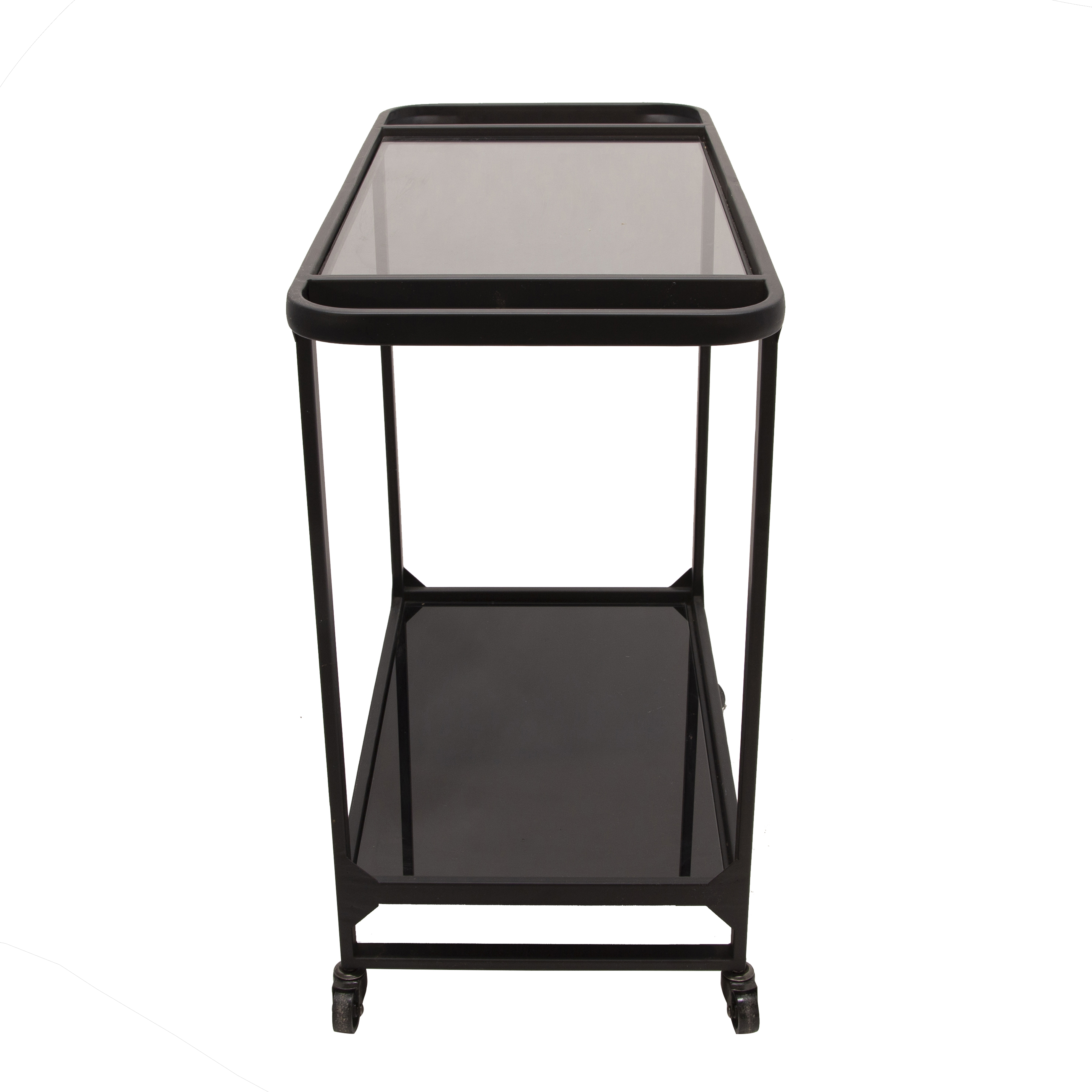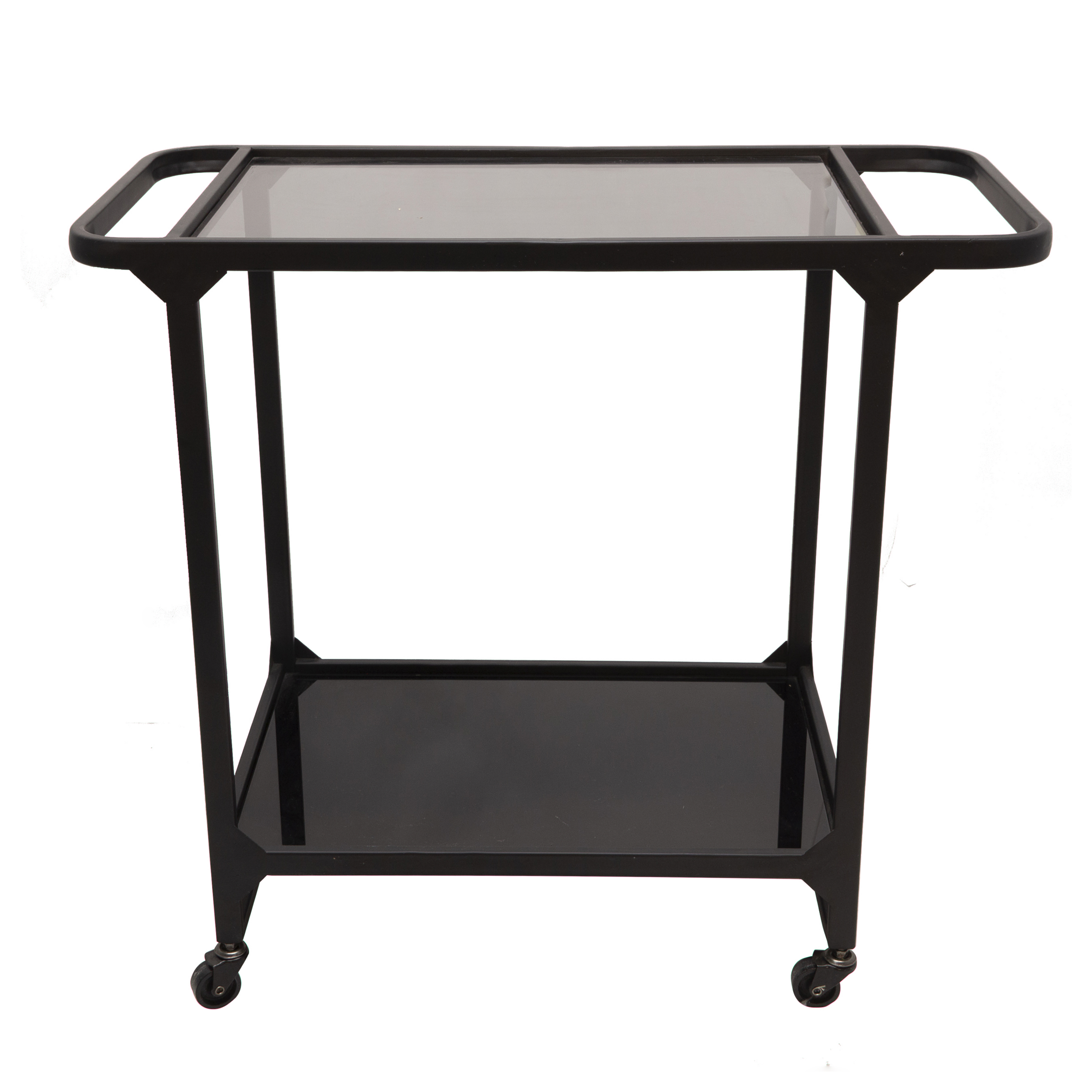 Carrito auxiliar , camarera, negro con topes cristal ahumado. Ruedas .
