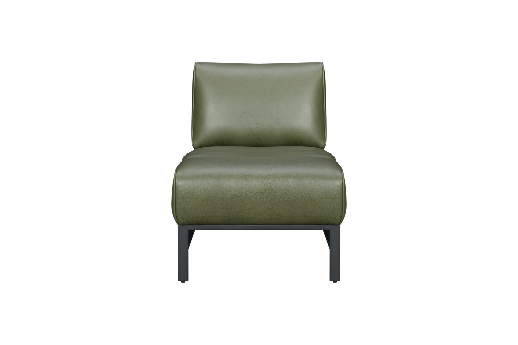Espectacular Chaise en piel , color Deep Green. Estructura metal y bandas de piel en negro.