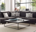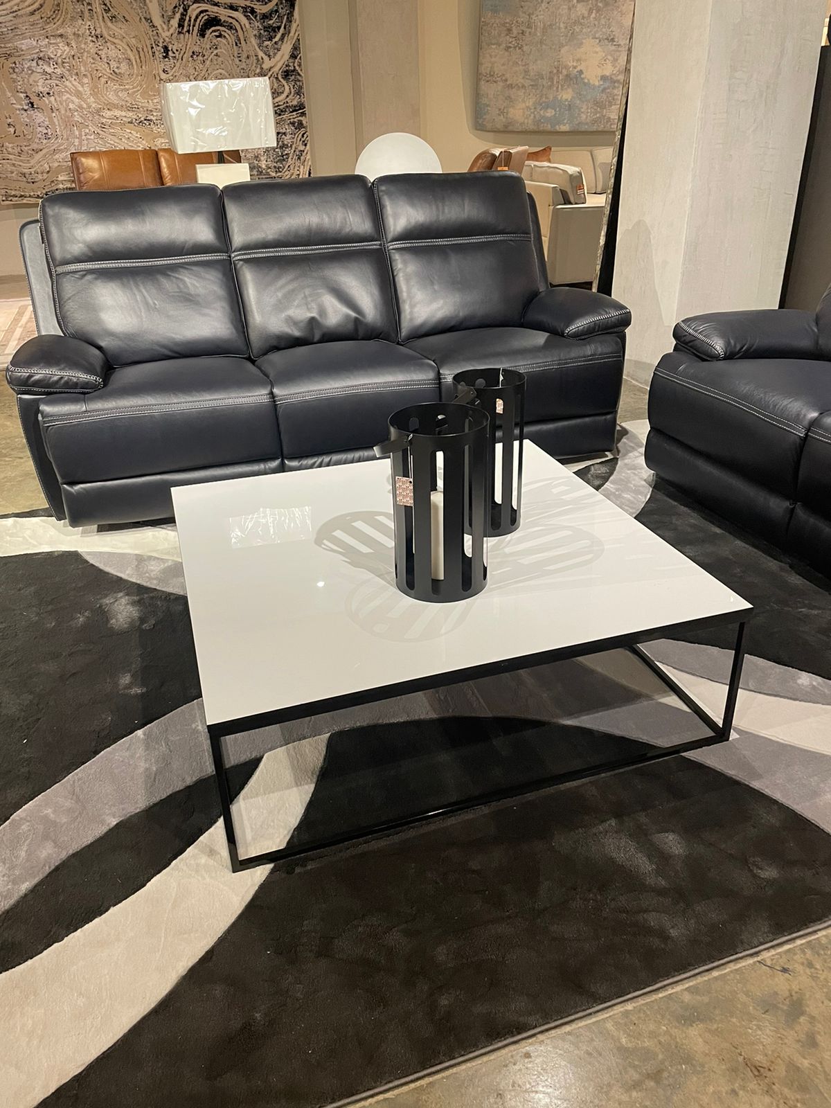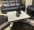 Mesa de centro cuadrada, versátil y moderna . base en hierro negro y tope blanco .