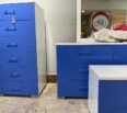 Las correderas son de tipo industrial para asegurar su funcionamiento y su fácil limpieza. Los frentes de las gavetas están terminadas con laca con base de agua y curadas con luz ultravioleta. Sistema Slat Europeo, no necesita Box Springs, solo usa colchón. Disponibles en color azul y rosado.