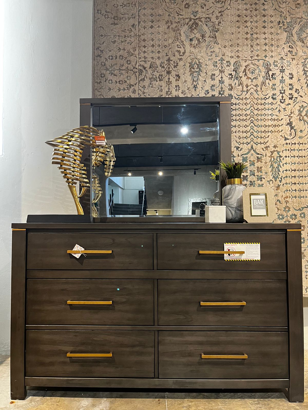 Detalles en tiradores mate Gold . Gavetas profundas para excelente almacenaje , correderas de excelente calidad. Construido en madera solida de Cashew y Veneers de Mindi . Ambas super resistentes . Preferidas por los fabricantes de muebles.