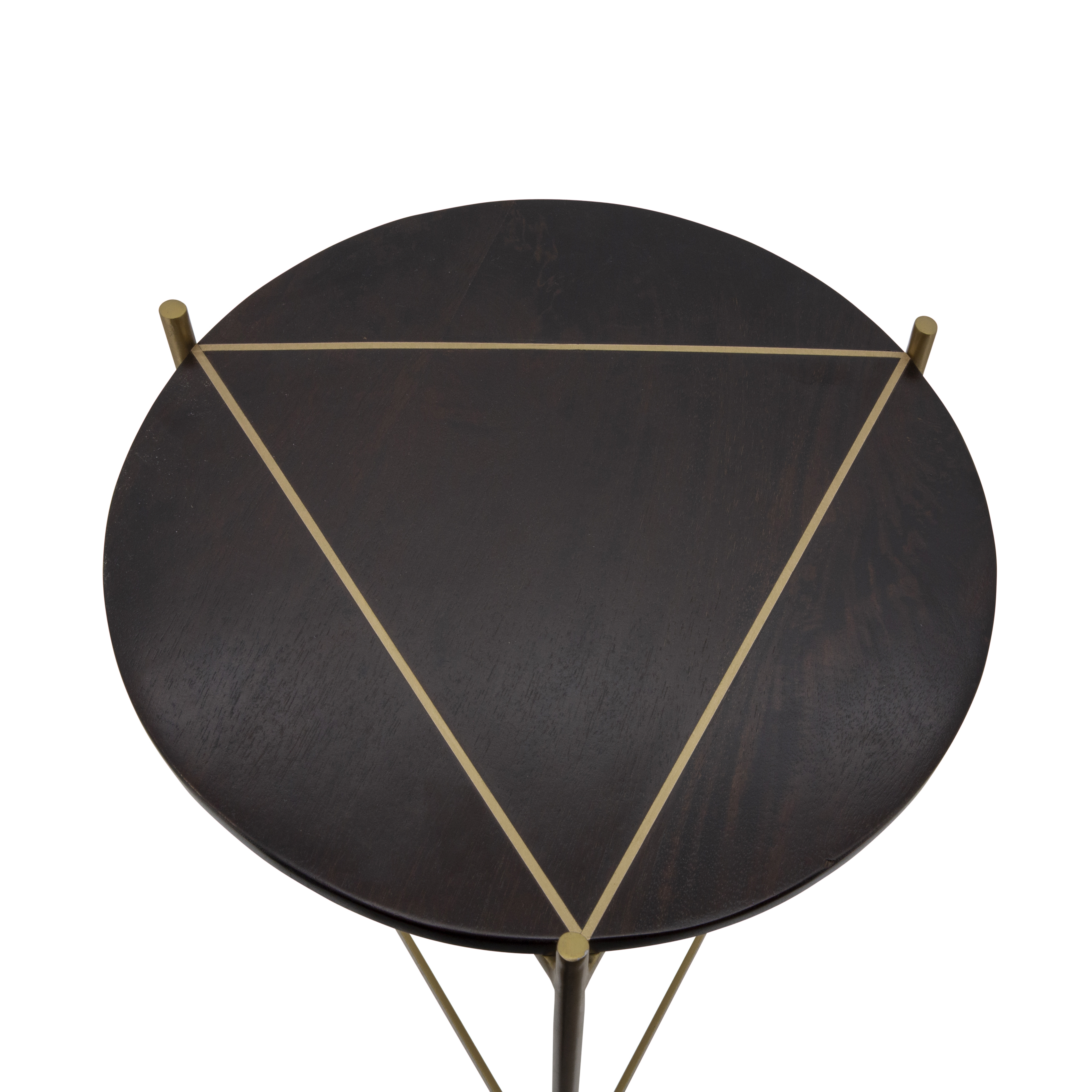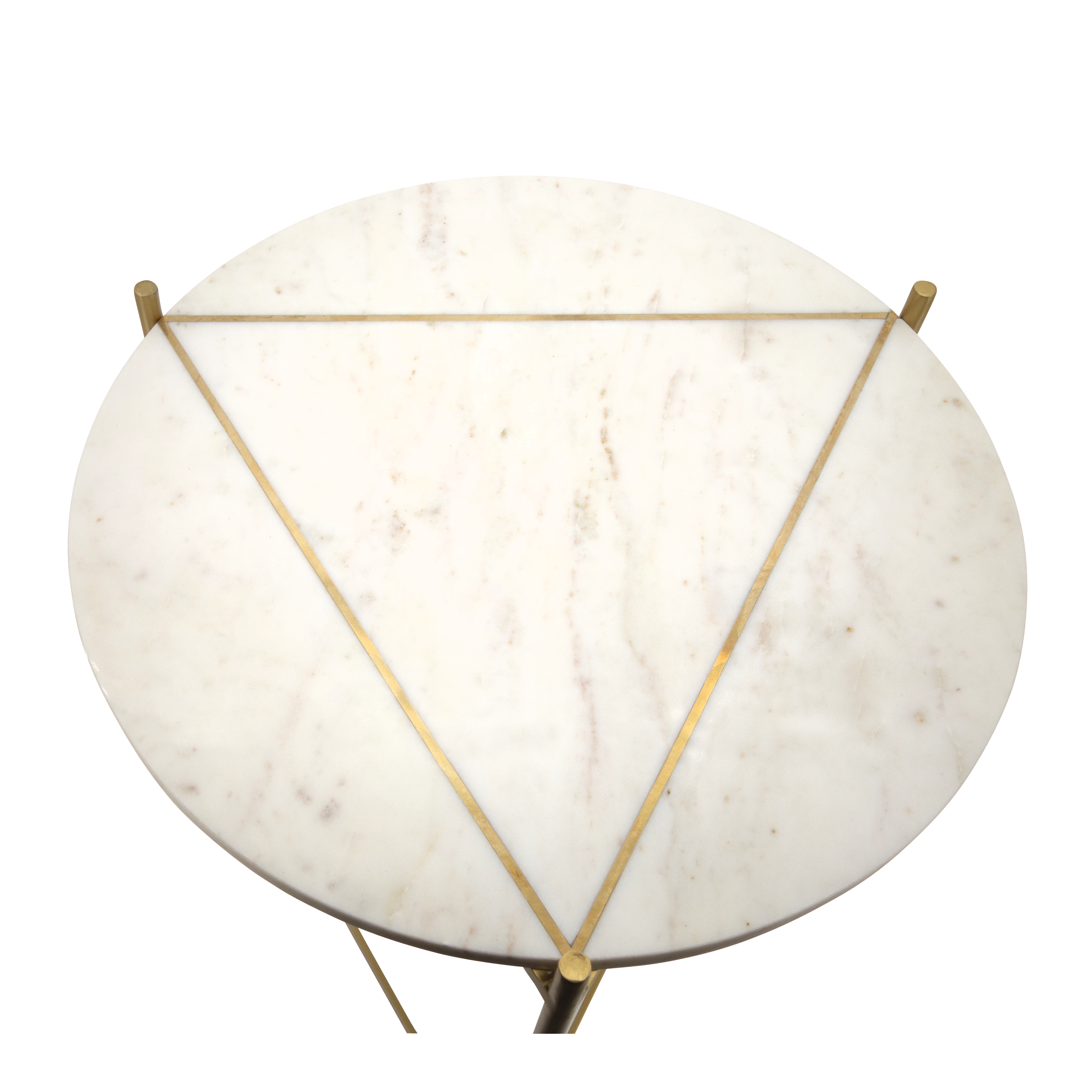 SEt de practicas mesitas auxiliares redondas , base dorada mate . Tope de piedra blanca /dorado y oscuro/dorado en contraste.
