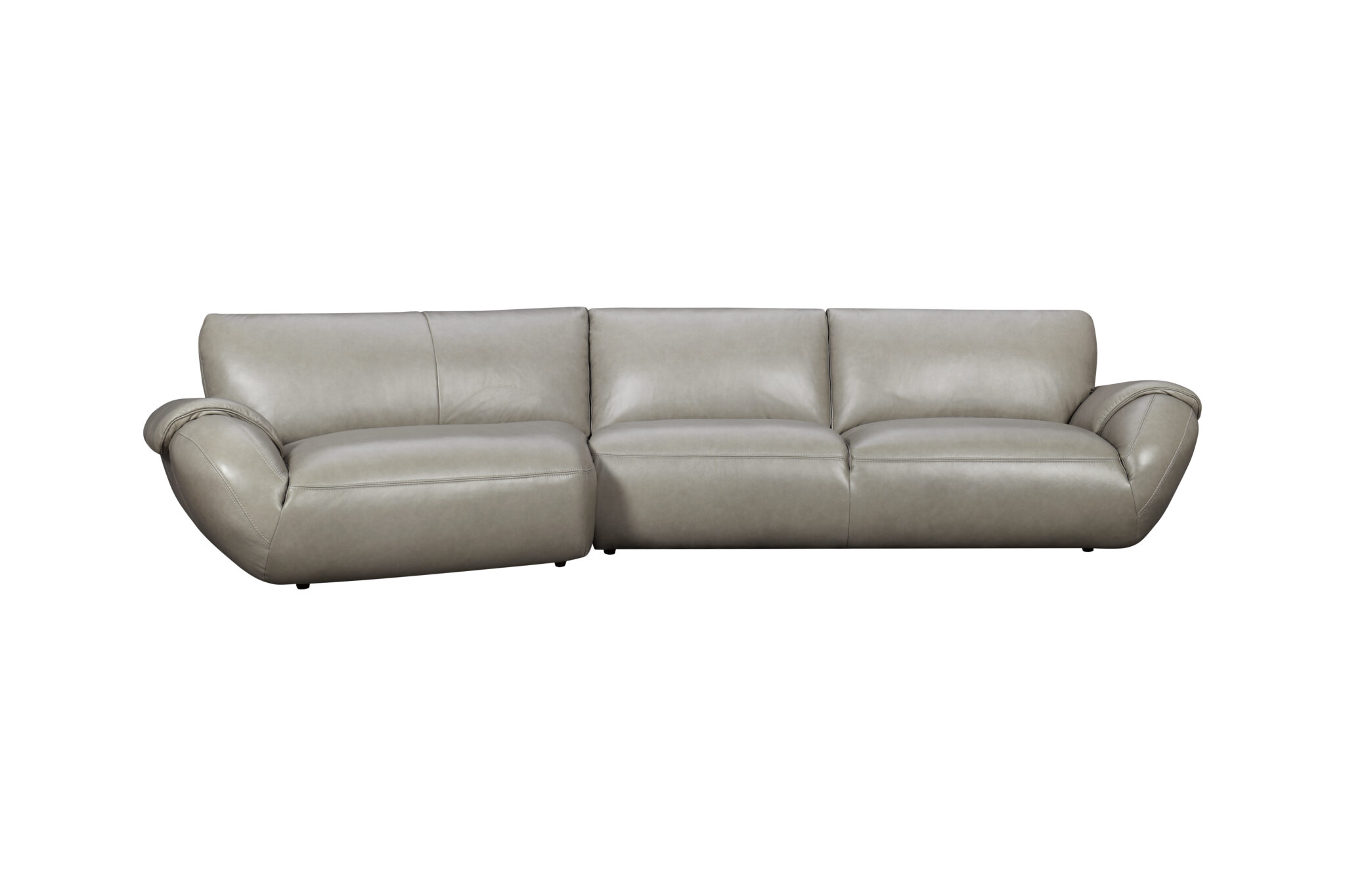 Sofa con Chaise Izquierdo Curvy en piel. Color greenish grey.