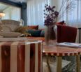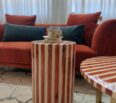 Moderno taburete, elaborada por artesanos dominicanos. En hueso y madera